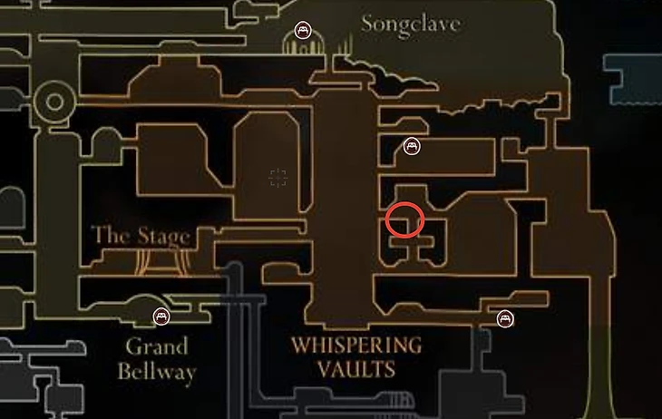 От точки на карте Шепчущих катакомб, направляйтесь в правую сторону.