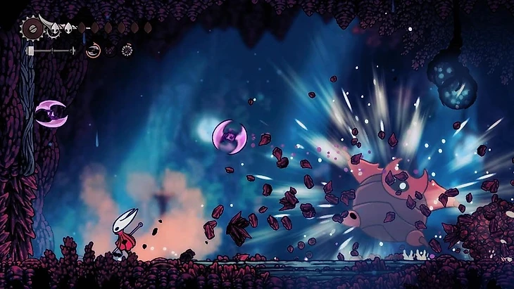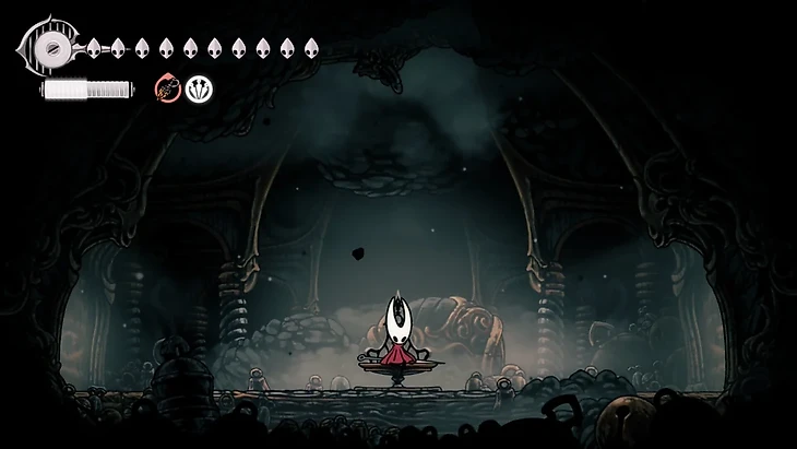 Поскольку Коралловая Башня в «Силксонге» существует как воспоминание, смерть или добровольный выход возвращают вас обратно к телу короля в Песках Карака. Потраченные ресурсы и инструменты восстанавливаются, так что можно пробовать снова без страха потерять прогресс.