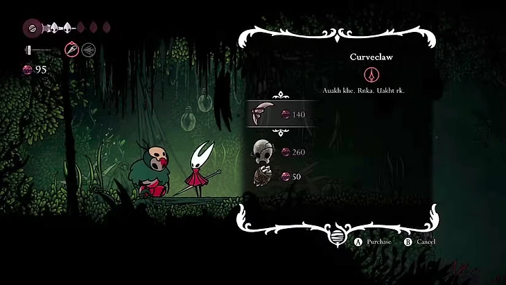 Важный момент: Скарр умирает до третьего акта игры, поэтому нужно купить все нужное заранее. Любые товары, которые вы не успеете купить, останутся лежать в комнате над его телом после его гибели. У Скарра в продаже простые, но полезные вещи: «Загнутый коготь» (дает силу прыжка), «Потрескавшуюся маску» (броня), набор осколков щита. Его рекомендуют посетить, прежде чем активируются события конца игры, чтобы не упустить эти товары.