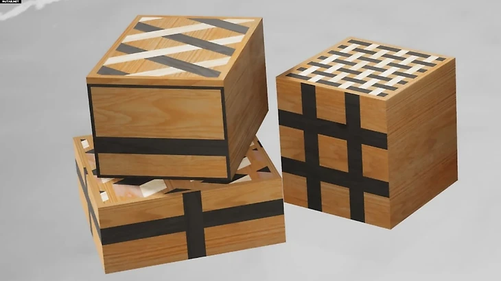 Чтобы решить эту головоломку с лисами, сдвиньте верхнюю левую панель влево, нижнюю правую – вправо, обе вертикальные вниз и завершите движением верхней крышки. Внутри – 8 единиц стали синоби.