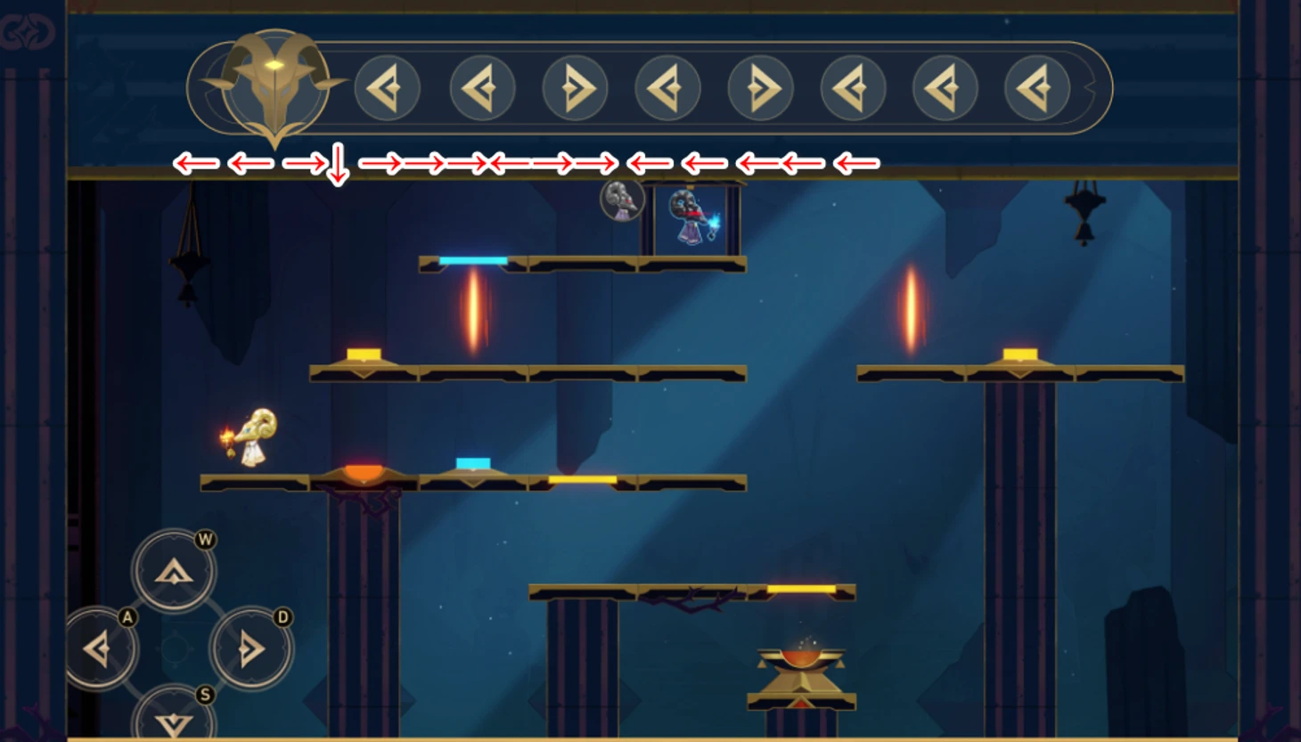 В сумеречном зале начните с последовательности: 3 шага влево, 1 вниз, 2 вправо и 1 влево. Затем продолжите 5-ю шагами влево, прыжком вверх и 2 влево. Достигните желтой плитки, спуститесь по лестнице, прыгните с правой платформы и двигайтесь влево до подъема. Поднимитесь по ступеням и подойдите к алтарю. Не забудьте открыть сундук с сокровищами по завершении!