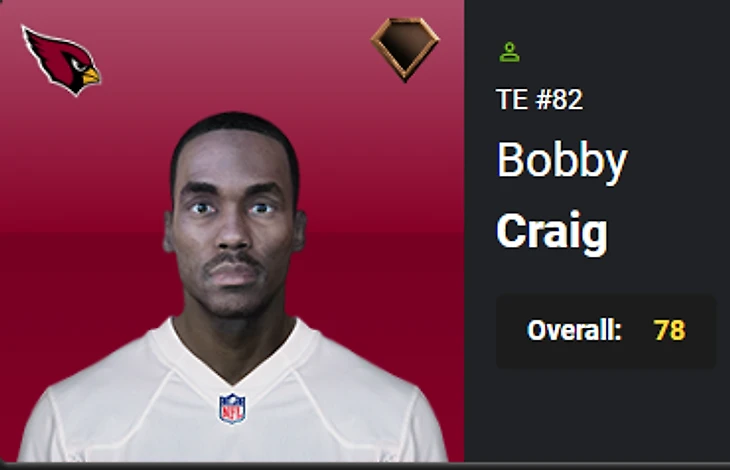 18) Bobby Craig, TE, ARI, OVR 72-78, Normal. Boom.