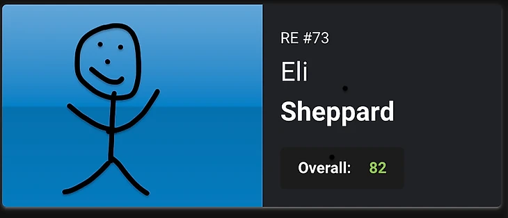 24) Eli Sheppard, RE, LAC, OVR 75-82, Star – Boom.