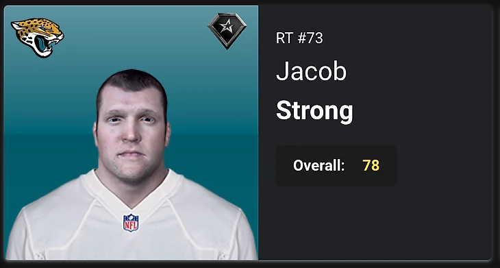 26) Jacob Strong, RT, JAX, OVR 74-77, Star – Boom.