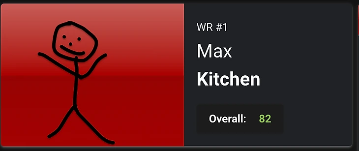 25) Max Kitchen, WR, SF, OVR 75-82, X-Factor – Boom.