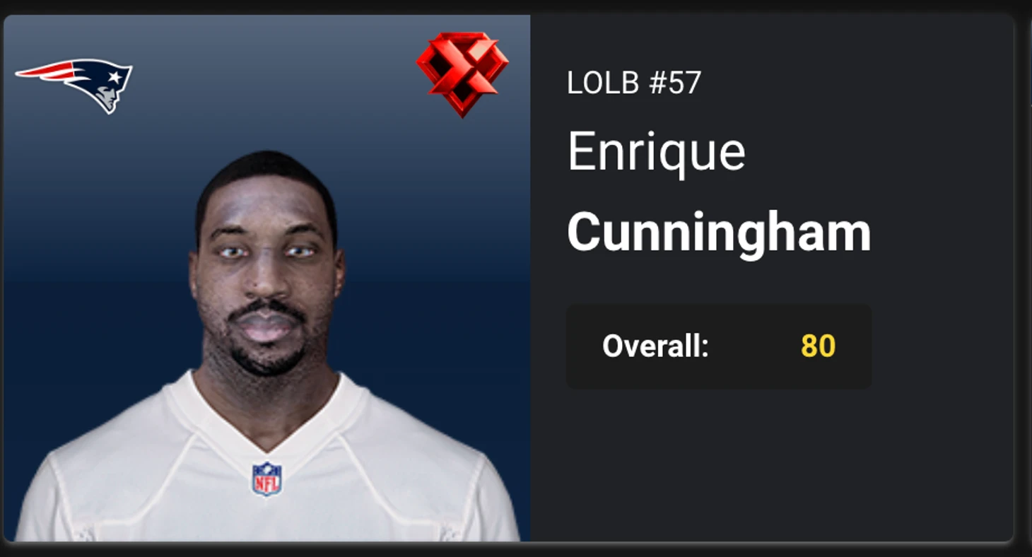 7) Enrique Cunningham, LOLB, NE, OVR 78-80, X-Factor – Boom.