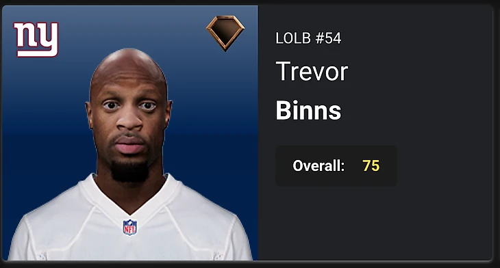 17) Trevor Binns, ROLB, NYG, OVR 73-75, Normal – Bust.