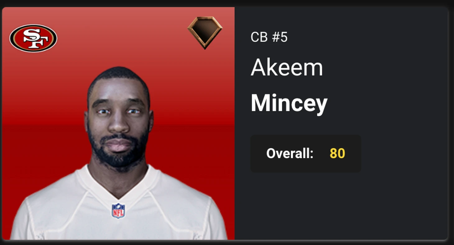 18) Akeem Mincey, CB, SF, OVR 76-80, Normal – Nah.