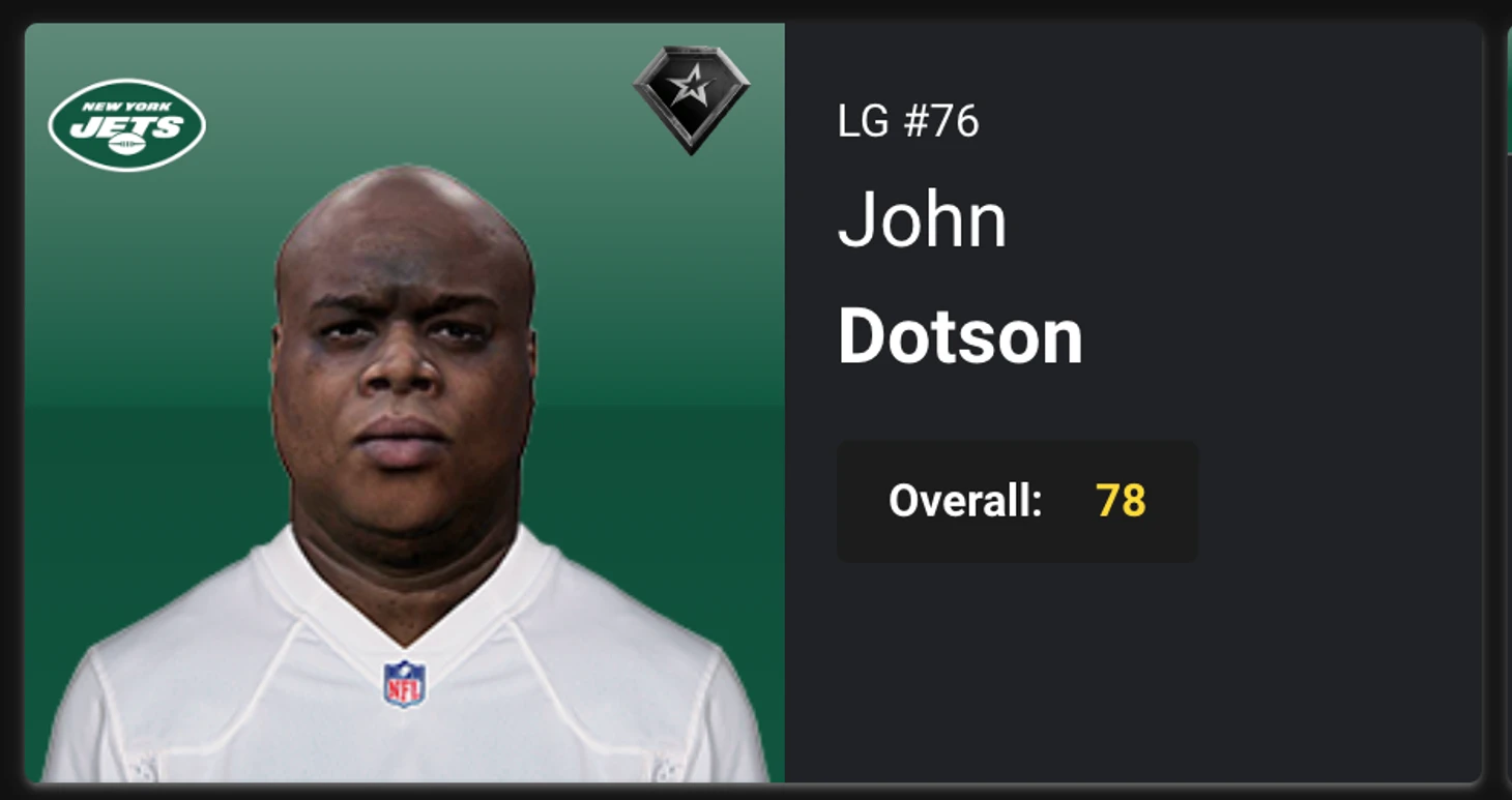 29) John Dotson, LG, NYJ, OVR 75-77, Star – Nah.