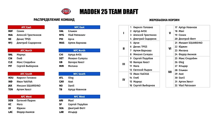 Мы делаем лигу по Madden 25. Уже провели драфт и собрали команды