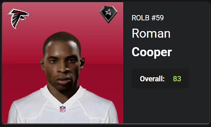 3. Roman Cooper, ROLB, ATL, OVR 74 – 82, Star. Boom.