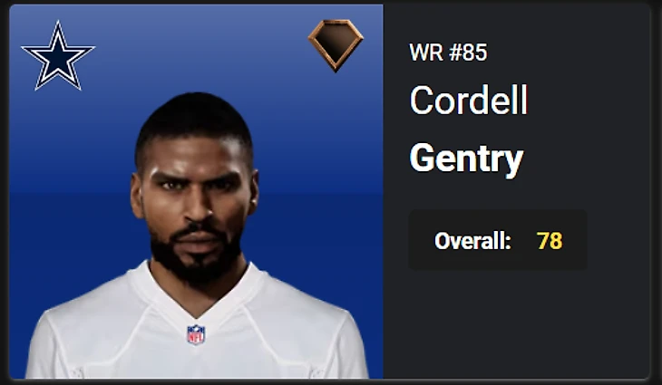 18. Cordell Gentry, WR, DAL, OVR 76 – 78, Normal. Bust.
