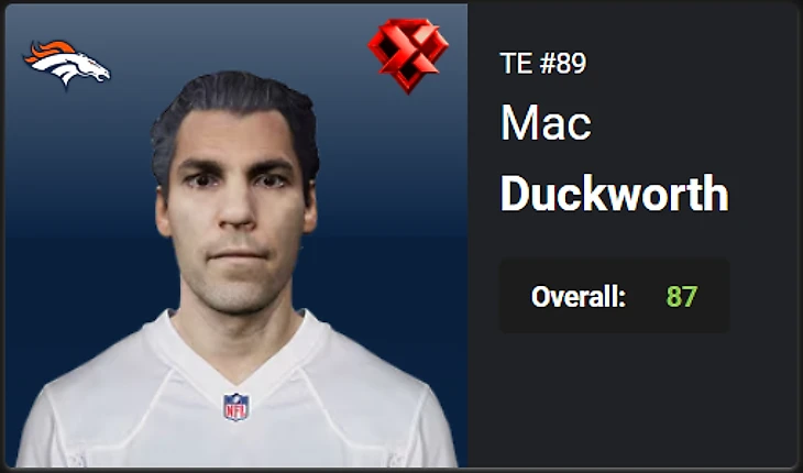 16.Mac Duckworth, TE, DEN, OVR 80 – 87, X-Factor. Boom.