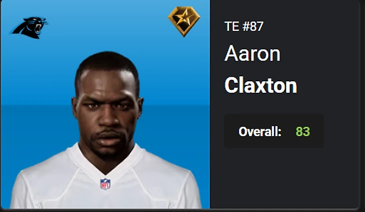 30.Aaron Claxton, TE, CAR, OVR 74 – 83, Star – Superstar. Boom.