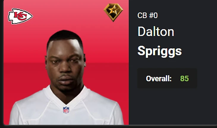 23.Dalton Spriggs, CB, KC, OVR 77 – 85, Star – Superstar. Boom.