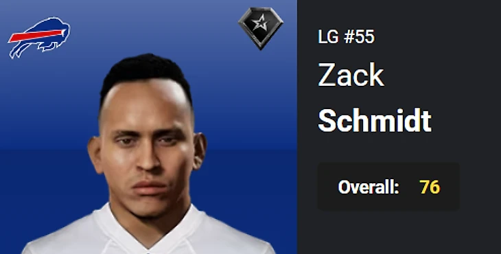 12.Zach Schmidt, LG, BUF, OVR 73 – 76, Superstar – Star. Bust.