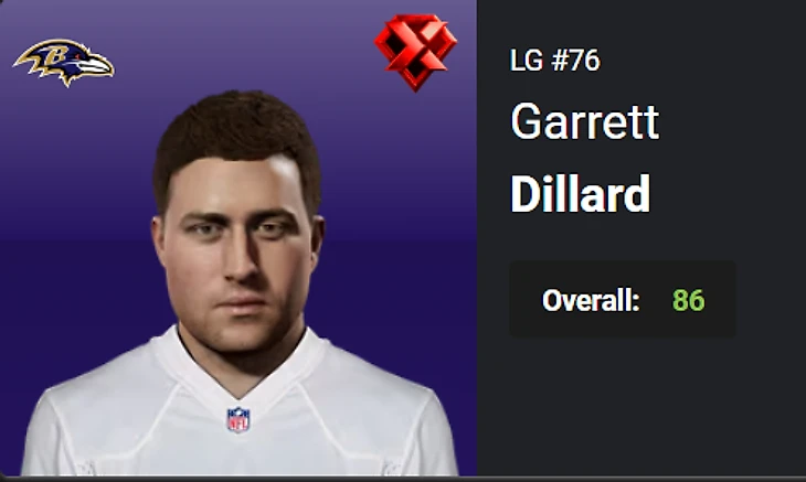28.Garrett Dillard, RT, BAL, OVR 73 – 86, Star – X-Factor. Boom.
