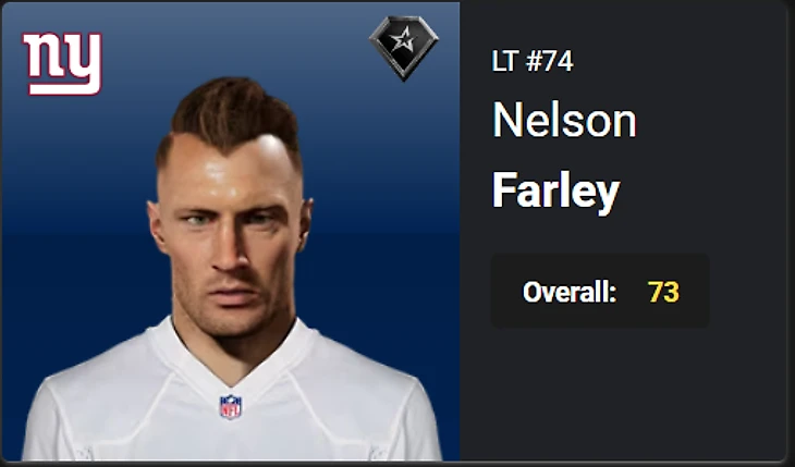 14.Nelson Farley, LT, NYG, OVR 72 – 73, Star. Bust.