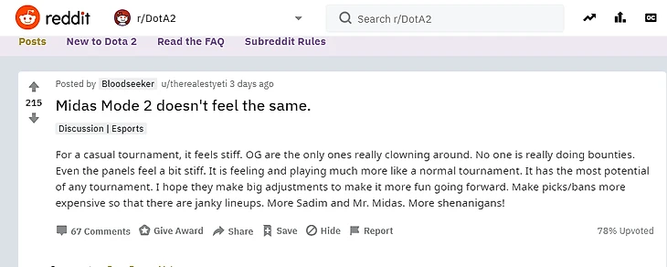 От Midas Mode 2.0 ждали того же, что было на первом турнире 2 года назад – трэшток в чате, смешные челленджи и несерьезные игры. В этот раз что-то пошло не так, и пользователи Реддита это почувствовали: