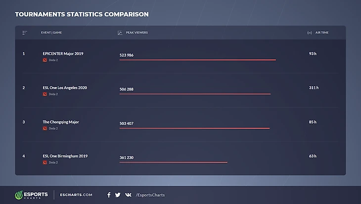Аналитики Esports Charts, ведущей компании по изучению аудитории киберспортивных трансляций, специально для этого поста подготовили сравнительный анализ по показателям нескольких турниров этого и прошлого года: