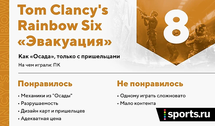Не могу забыть про эндгейм. В большинстве похожих проектов не хватает контента: игроки проходят игру, открывают все доступное вооружение и… уходят, ведь игре больше нечего им предложить. Здесь может получиться так же: по грубым подсчетам на достижение 30-го уровня и открытия большинства пушек и гаджетов уйдет часов 40-70. Этого явно недостаточно, и Ubisoft уже анонсировала «Протокол Вихрь» для самых скилловых игроков и недельные активности разного рода – только время покажет, смогут ли они удержать геймеров. В любом случае, сниженная цена в 1669 рублей может повлиять на решение о покупке, так же как положительно повлияла на мою итоговую оценку. Хорошо, что издатель осознает – эта игра построена на базисе другого их хита и не должна стоить, как ААА-проект.