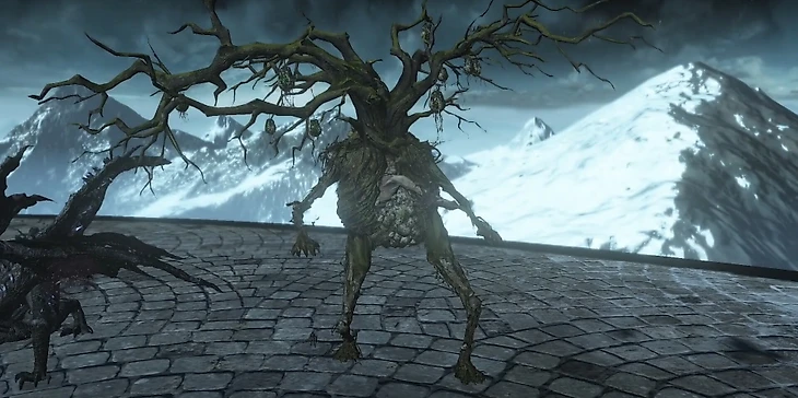 И лидером рейтинга самых больших боссов Dark Souls III становится Проклятое Великое древо. Когда босс встает во весь рост, то достигает 35 метров!