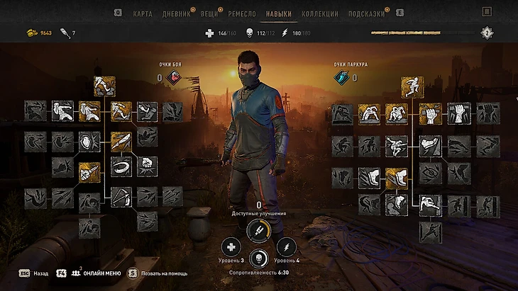 В новинке две ветки прокачки: бой и паркур. В идеале выберите доминирующую ветку сразу после прохождения пролога. Если будете качать все сразу, то полностью открыть ветку станет проблематично. Разумеется при желании пройти не только сюжетную кампанию, но и большинство побочек у вас гораздо больше шансов выбить все перки. Открываются они элементарно: XP боя даются при столкновениях с мертвецами или людьми, а XP паркура – в процессе бега и выполнения акробатических трюков.