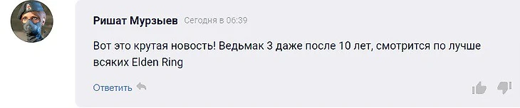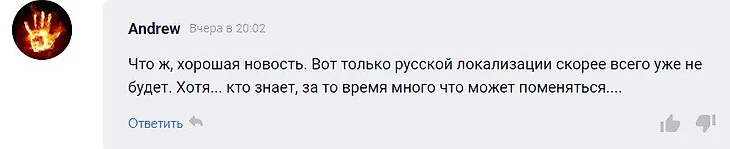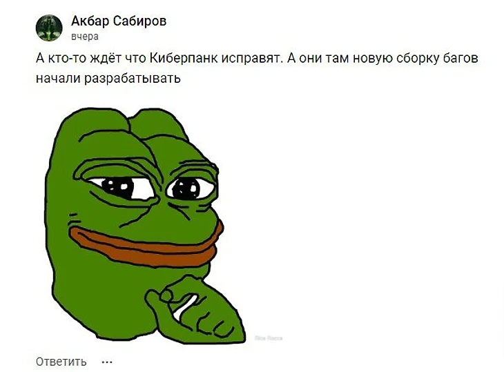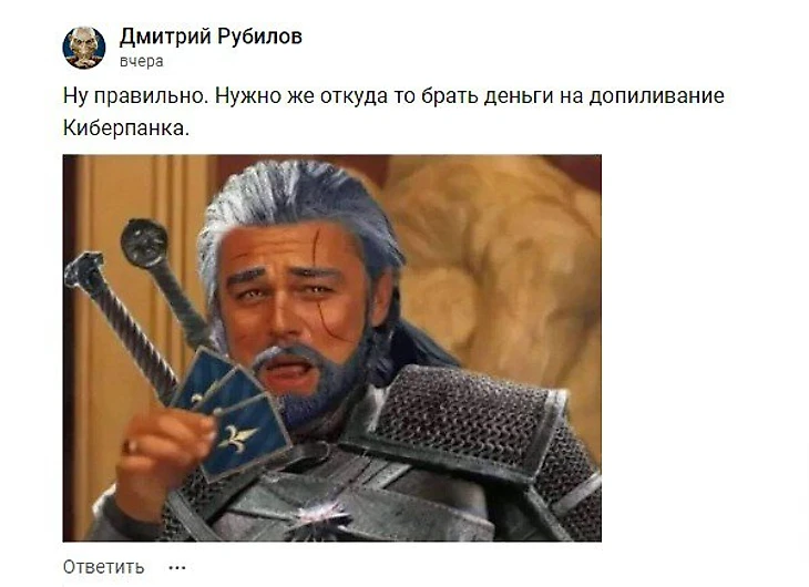На российских ресурсах настроение совсем другое, большинство просто надеются, что смогут легально поиграть в новинку. Люди напоминают, что «Киберпанк» так и не доделали, а работа над четвертым «Ведьмаком», судя по всему, уже идет полным ходом. Многие с удовольствием ждут бесплатной раздачи игры в EGS.