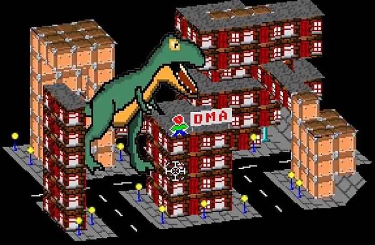 Проблема заключалась еще и в неясной концепции игры. Первая GTA сперва была игрой про нападение динозавра на город! Да-да, изначально ключевой программист студии Майк Дейли проводил технический эксперимент, чтобы показать, как здания могут выглядеть в 3D с видом сверху.