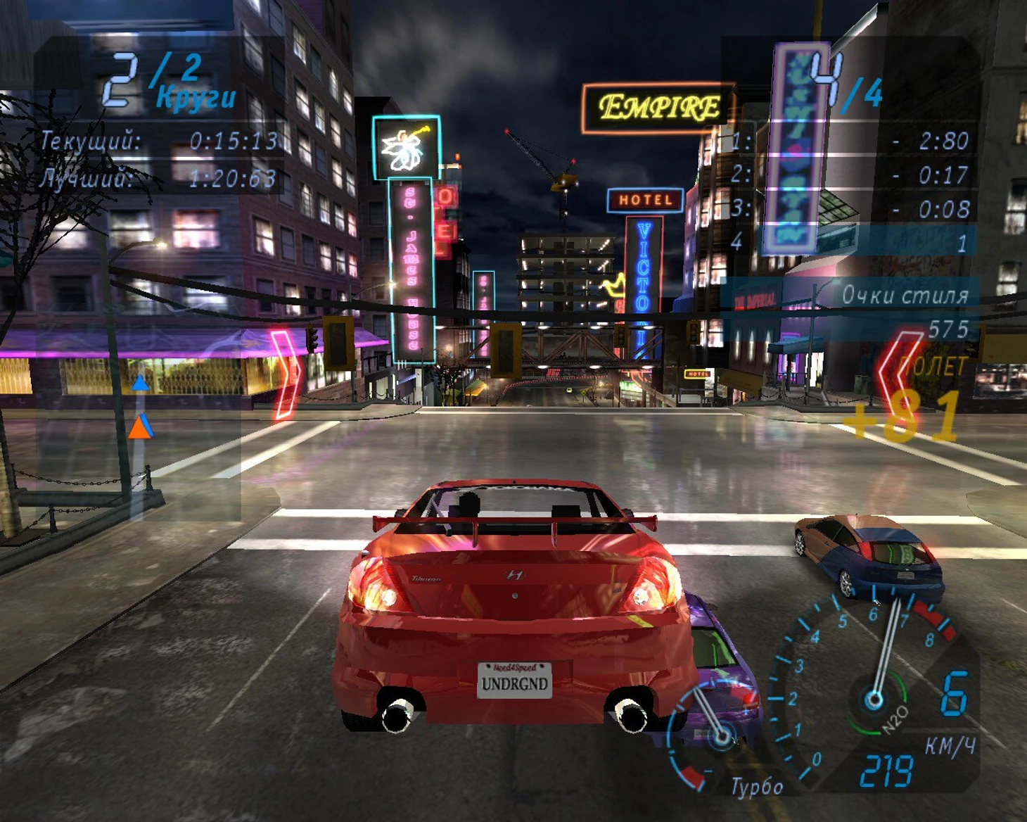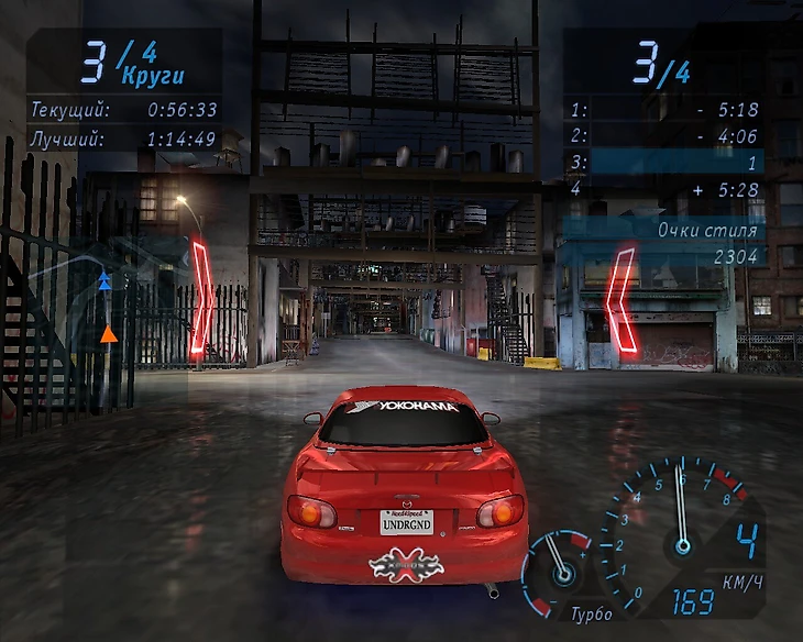 Придирчивый современный геймер может покрутить носом после пары гонок. Дескать, это все: просто ездить по ночному городу без открытого мира, без челленджей, без поиска машин? Геймплей – проще не придумаешь – газ вообще отжимается редко, настолько он аркаден. Я же четко вижу одни плюсы. Underground не затянута, здесь не нужно тратить время на переезды между гонками и прочую шелуху в опенворлде. Игра идеально подходит людям, которые в ус не ставят автомобильные навороты и не знают, что такое трансмиссия.