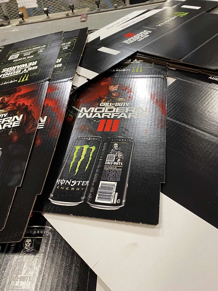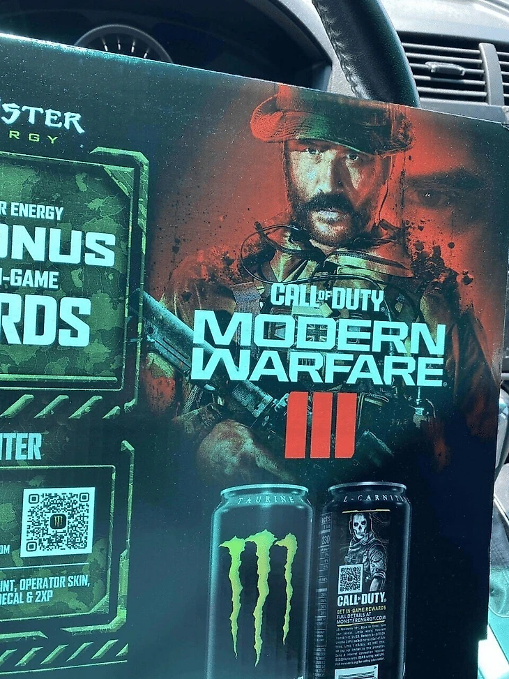 Пользователь Твиттера под ником algebra_sloth опубликовал снимки с промо-материалами Call of Duty: Modern Warfare III, неанонсированного продолжения в серии шутеров Activision. Как видно по фото, игра – часть рекламной кампании энергетического напитка Monster Energy.