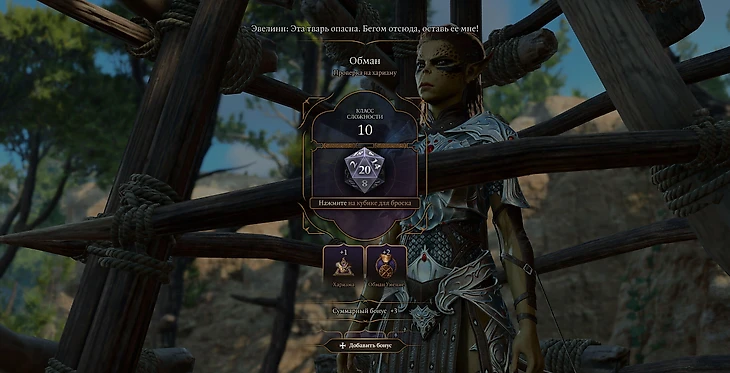 Простейший мирный способ спасти Лаэзель – обмануть тифлингов. Выберите реплику «Эта тварь опасна. Бегом отсюда, оставь ее мне!». Придется пройти проверку на харизму, выбросив на кубике 10 и более. Если у вас получится, то узнаете о случившемся взрыве. Попытайтесь убедить тифлингов в том, что вам отчаянно нужен врачеватель, чтобы выведать расположение лагеря. Если пройдете проверку на харизму и выбросите 5 и более, то узнаете об Изумрудной роще и лекаре Нетти.