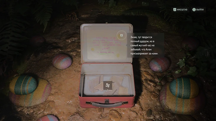 Неподалеку, за деревьями, также найдете ланч-бокс Алекса Кейси с одним фрагментом рукописи.