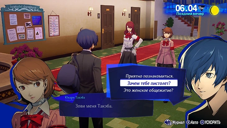 Сюжет и правда интересный, ему идет линейность: в некоторых эпизодах дают погулять, но опция на любителя и больше отвлекает от плотного повествования. Кайфово порой погрузиться в игру без открытого мира и кучи иконок на карте! Пока из дополнительных активностей попались разговоры с другими учениками и жителями города. Благодаря им мир «Персоны» чуть живее и разнообразнее.