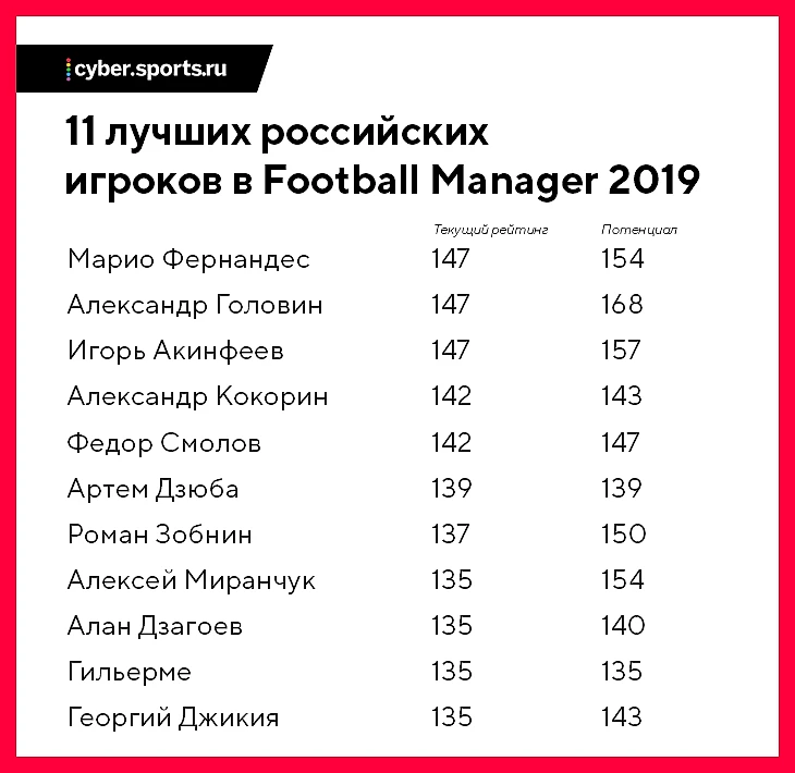 В этом сезоне Головин дозрел: блеснул на ЧМ, классно отыграл в ЦСКА и уехал в Европу. Высокого мнения о полузащитнике и скауты FM: потенциал 168 – огромен (лучший для российских игроков за долгое время), а сам Александр не долго продержится в «Монако», уехав в «Ювентус» через пару сезонов.
