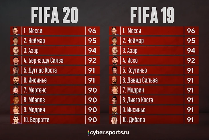 Сначала сравним самых техничных игроков в FIFA сейчас и год назад.