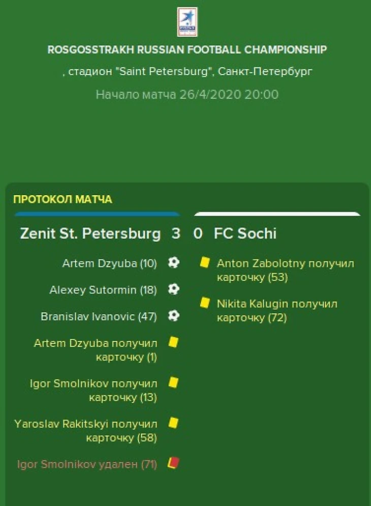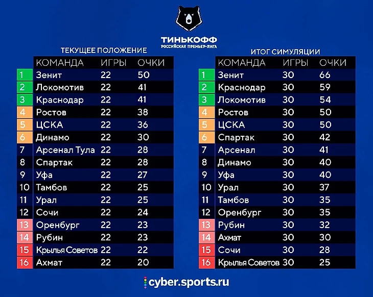 Почему до симуляции Зенит выше Локо и Краснодара, если у него очком меньше?