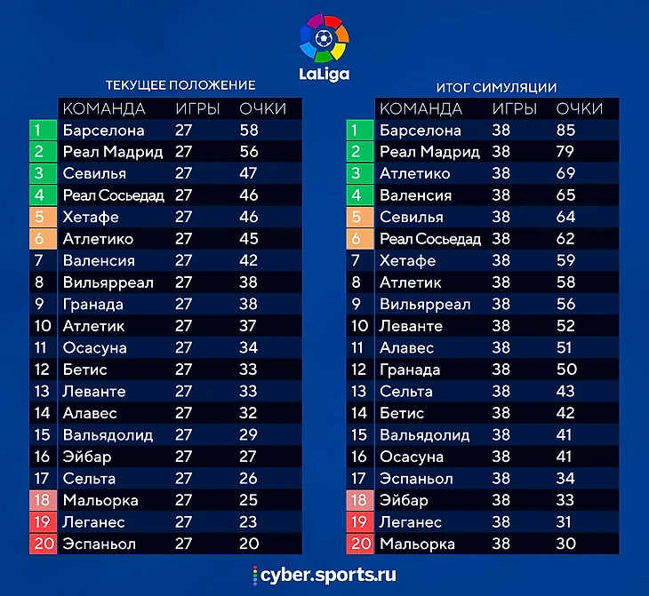«Барселона» – чемпион. Все решил Месси: аргентинец в 11 оставшихся матчах забил 12 голов. Кубок Короля выиграл «Реал» – но не мадридский, а тот, что с Эдегором. «Сельта» Смолова, кстати, набрала прекрасную форму и оказалась в середине таблицы – но сам Федор забил лишь дважды.