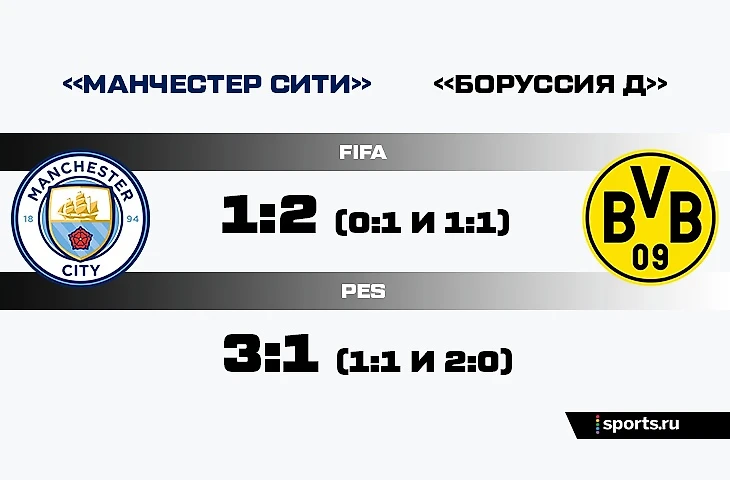3 года подряд «Сити» вылетает из ЛЧ на стадии 1/4, и FIFA настаивает, что подобное случится и сейчас. Компьютерные матчи получились довольно унылыми. И все решили два стандарта в пользу дортмундцев.
