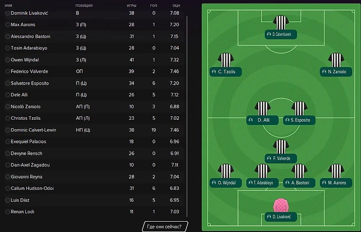 Чем объяснить дальнейшее падение до 12 места – неясно. Кроме Сен-Максимена команда никого не потеряла, зато вложила 67 миллионов в Вейндала из «АЗ» (очень перспективный левый фулбек в FM) и 50 – в Луиса Диаса из «Порту». Центр защиты укрепил Тосин Адарабиойо из «Фулхэма», который впоследствии станет легендой клуба. Однако «Ньюкасл» ждал настоящий крах в АПЛ, который не оправдать непривычным участием в еврокубках (1/4 Лиги Европы и вылет от «Севильи»). «Сороки» посыпались в конце: 6 поражений и 1 ничья в Премьер-Лиге, когда игры на два фронта уже не было. Зато в актив можно записать финал Кубка, проигранный «МЮ» лишь по пенальти.