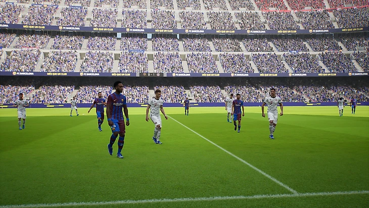 Патч изменил неудачные лица: Месси больше не похож на головастика, а Роналду перестал корчить рожицы (и вообще улыбаться). Игроки на Unreal Engine выглядят превосходно – количество полигонов превосходит FIFA 22. Особенно хорошо получились игроки из команд-партнеров. Местами графике удается показать фотореализм.