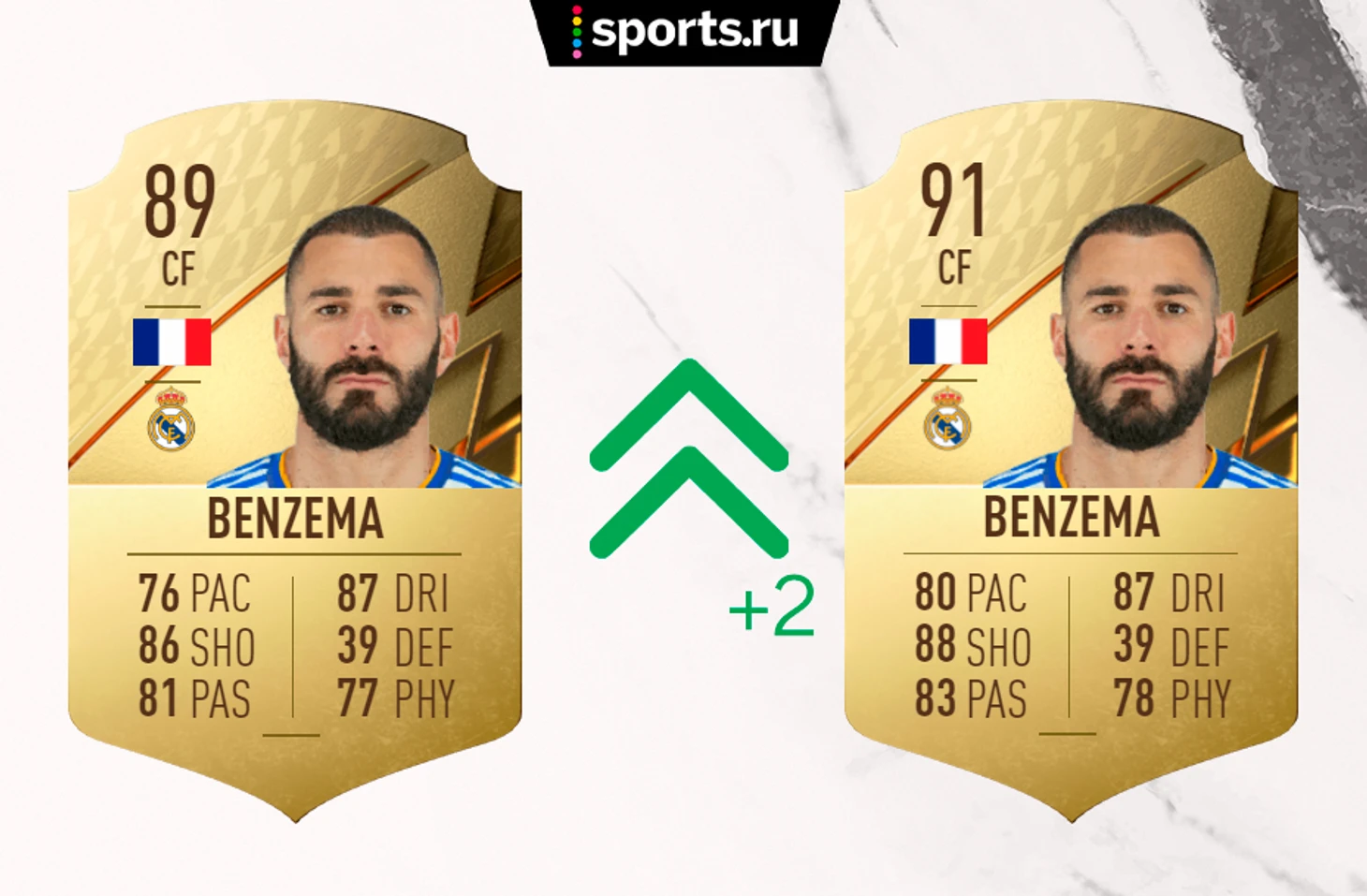 Раньше Карима Бензема много критиковали, но к концу карьеры он доказал статус топ-форварда. В нынешнем сезоне француз стал одним из лучших бомбардиров мира, а в случае триумфа в ЛЧ наверняка получит «Золотой мяч». +2 от EA – ожидаемый итог.