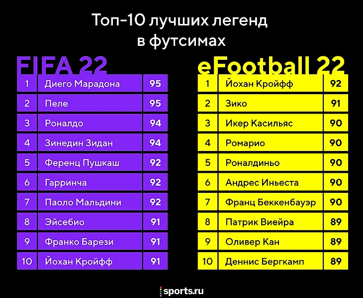 Как устроены рейтинги легенд в FIFA и eFootball?