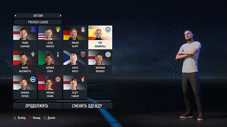 В карьеру завезли сотни реальных тренеров. В АПЛ доступны все 20 менеджеров: от Пепа Гвардиолы до Фрэнка Лэмпарда, но есть и просадки – Бундеслига и Лига 1 пока получили всего по одному коучу. Сюда попал даже Станислав Черчесов! Похоже, EA всерьез взялась за лицензии и в будущем планирует максимально расширить подбор тренеров.