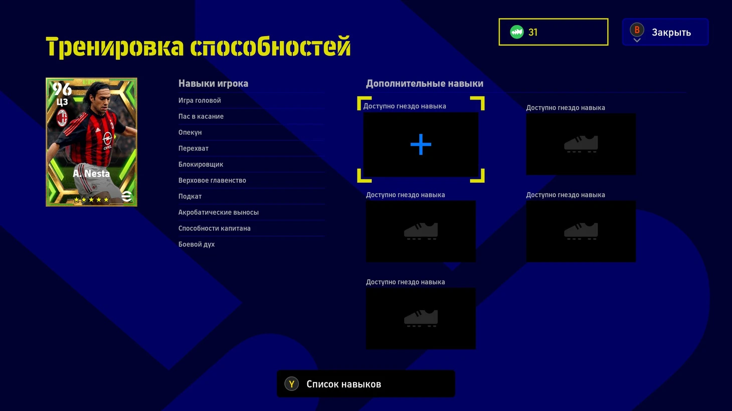 Konami признала ошибку разграничения игроков по стилям и повысила их новым цветным карточкам до 90. Появились подсказки о работе способностей футболистов, а состав облагородили разнообразными фильтрами и автовыбором под конкретные турниры. Но больше всего геймеров порадовали сброс прокачки и тренировка дополнительных навыков игроков. Необходимые умения можно выбить на ненужных карточках и перенести мастерство на других игроков за солидную сумму – 100-200 тысяч G.