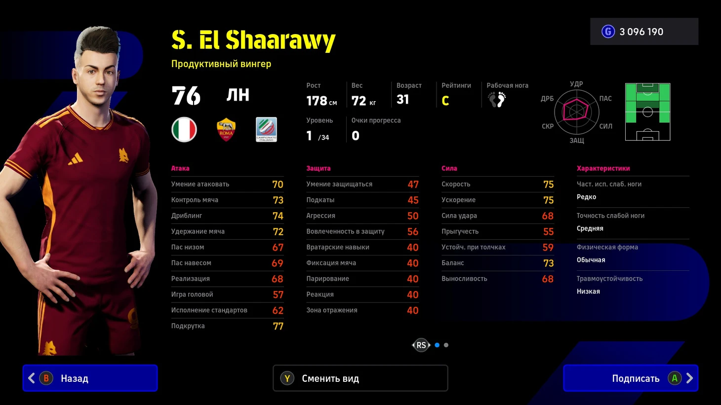 Любители большого футбола потеряли Стефана Эль-Шаарави из виду, хотя вингер притормозил падение карьеры после возвращения из Китая и теперь выходит в основе «Ромы» Моуринью. Сбалансированные атакующие статы, отличные дальние подкрутки, навык «Суперзамена» и сразу пять родных позиций – еще нужны аргументы, зачем покупать Стефана?