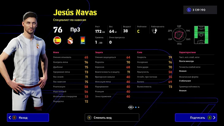 Характеристики Хесуса Наваса немного подрезали, тем не менее он по-прежнему отличный защитник. Быстрый, техничный, с хорошим навесом, к тому же закрывает четыре фланговые позиции в атаке.