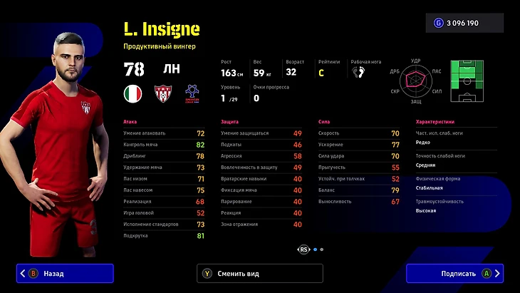 Лоренцо Инсинье уже пару лет в МЛС, но еще не растерял талант. Он достаточно быстр, обладает разнообразным арсеналом умений, вдобавок его техника отлично раскрывается в новом, более динамичном геймплее eFootball 2024.