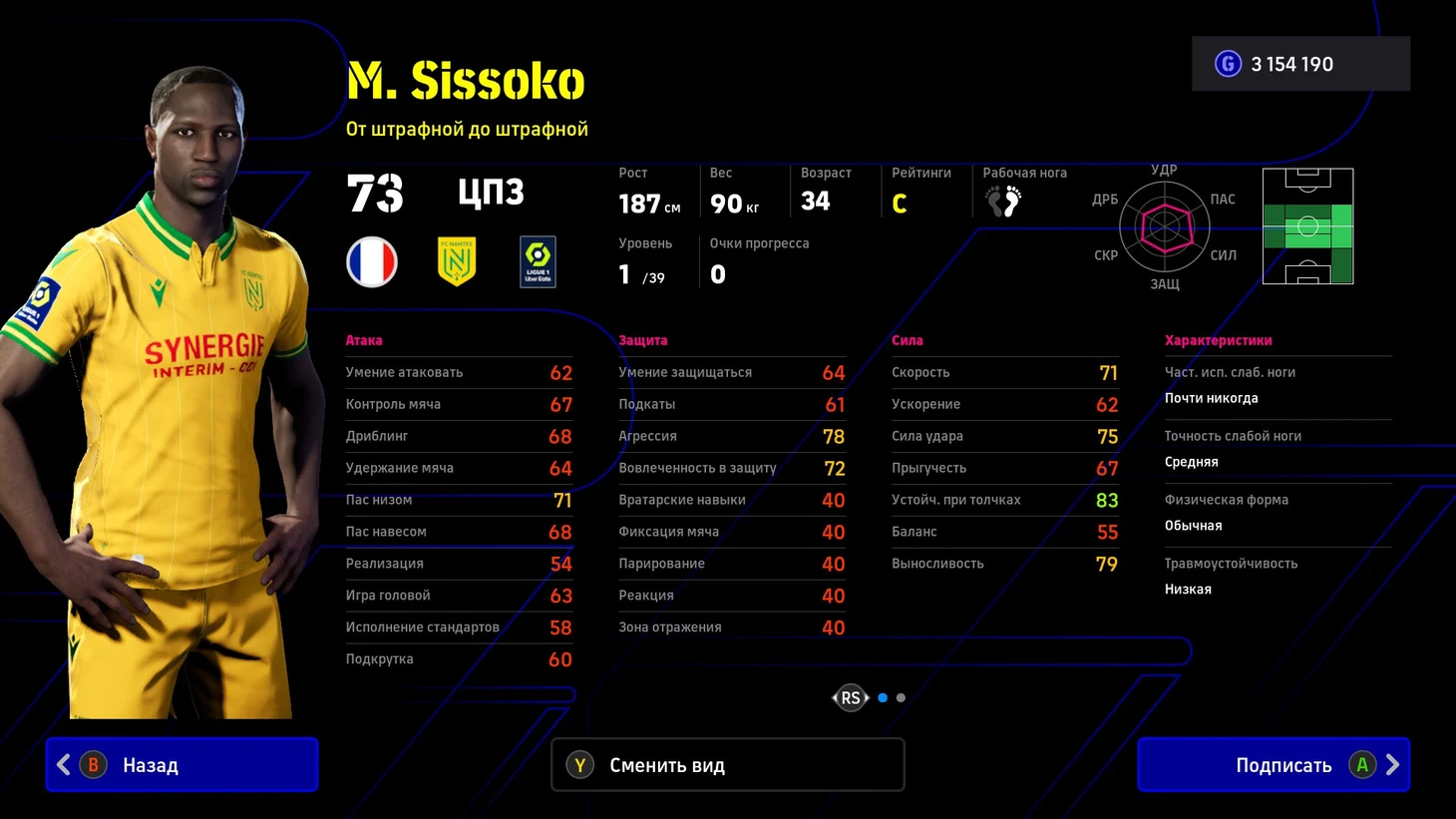 Прошли времена, когда Мусса Сиссоко кошмарил соперников «Тоттенхэма» и сборной Франции. Атлетичный француз вернулся в Лигу 1, в «Нант», и все равно хорош как опорник. Мощная моделька, высокая скорость и «Боевой дух» сделали из Сиссоко имбу начального уровня.