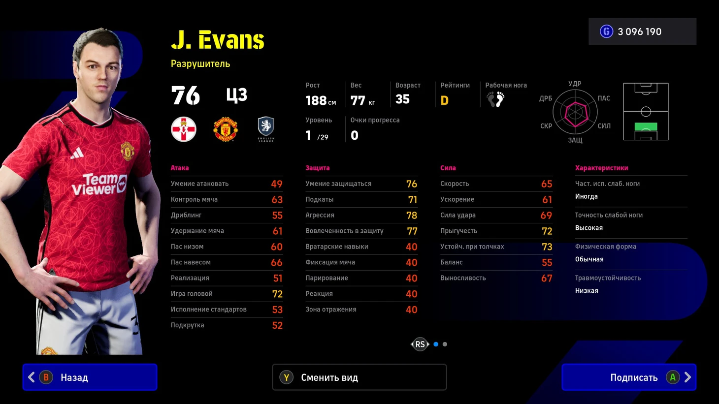 Джонни Эванс не был большой звездой, но стабильно играл в «Манчестер Юнайтед» Алекса Фергюсона, а позже провел несколько отличных сезонов в «Лестере». 35-летний защитник получил в eFootball 2024 отличные характеристики и полный набор дополнительных навыков – от «Перехвата» до «Боевого духа».